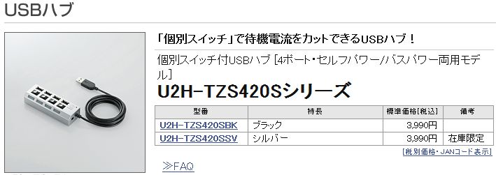 接続したUSB機器の電源を個別にオン/オフできる「個別スイッチ」を装備したUSBハブです。